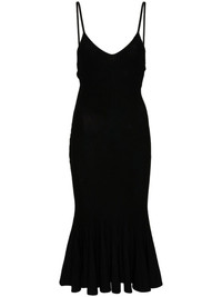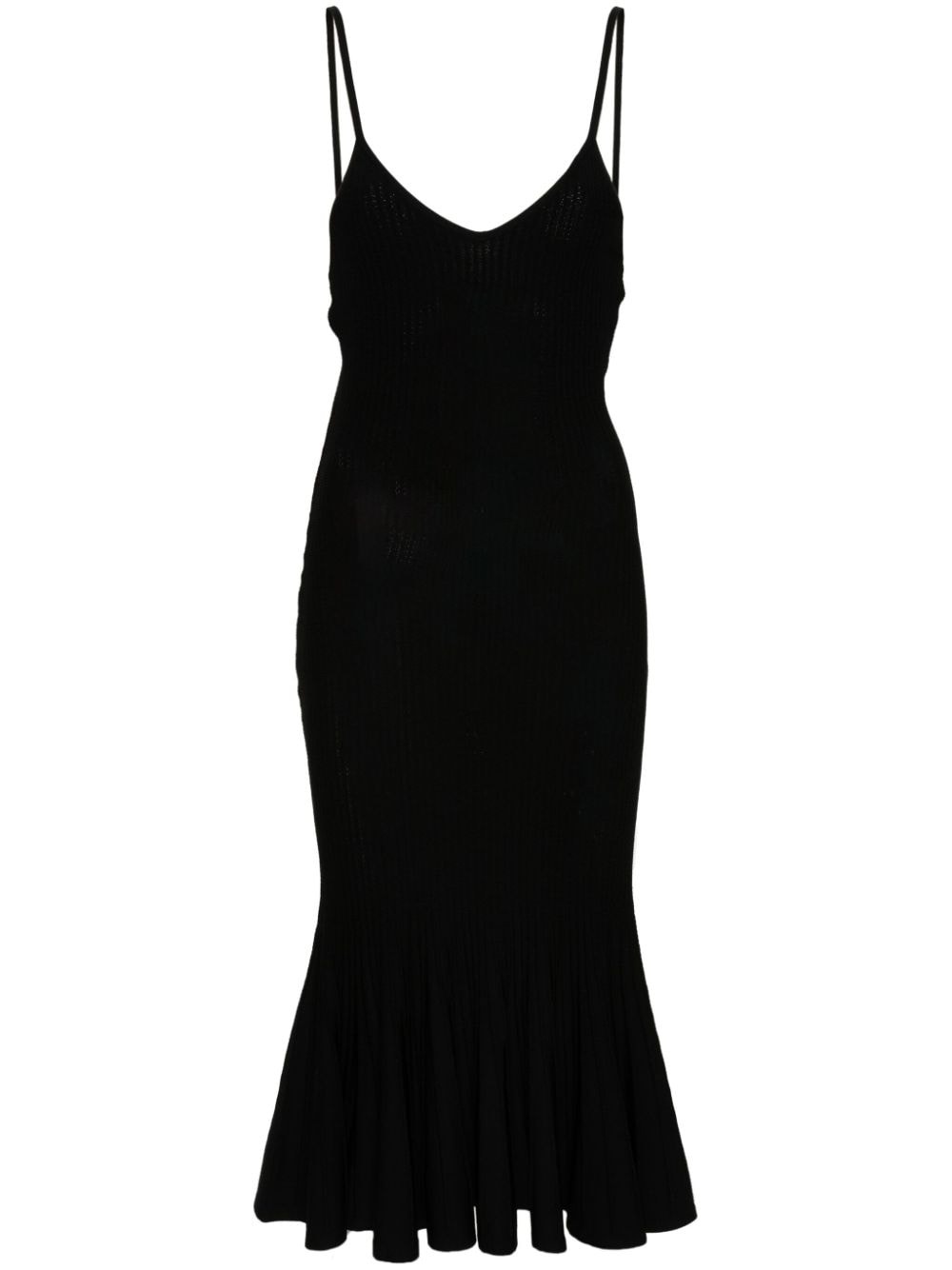 Queen dress Highlights - Black - Pointelle knit - Slip silhouette - Spaghetti straps - V-neck - Fitted waistline - Flared hem - Mid-length Made in Italy Composition Viscose 82%, Polyester 17%, Polyamide 1% SIZE & FIT Model measurements Height 5 ft 10 in(1.78 m) Bust/Chest 31.49 in(80 cm) Hips 37 in(94 cm) Waist 23.62 in(60 cm) FittingInformation Designed for a close fit throughout Made with a midweight knit, this piece offers some stretch This piece fits true to size – take your usual size Washing instructions Dry Clean Only