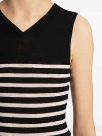 Renato top Highlights - Black and white - V-neck - Horizontal stripe pattern - Ribbed detailing Made in Italy Composition Wool 97%, Polyamide 2%, Polyurethane 1% SIZE & FIT FittingInformation Designed for a slim fit that sits just away from the body offering a close yet comfortable fit Made from a midweight stretch fabric, this piece offers elasticity and flexibility when worn Washing instructions Dry Clean Only