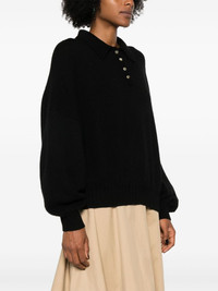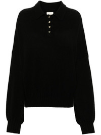 Rene cashmere blend polo jumper Highlights - Black - Cashmere blend - Polo collar - Front button placket - Drop shoulder - Long sleeves - Ribbed cuffs and hem Imported Composition Cashmere 96%, Elastane 4% SIZE & FIT Model measurements Height 5 ft 11 in(1.8 m) Bust/Chest 32.67 in(83 cm) Hips 35.82 in(91 cm) Waist 25.98 in(66 cm) FittingInformation Designed to be unstructured, offering a loose fit throughout The ribbed hem offers a close, comfortable fit Made with a midweight knit, this piece offers some stretch This piece fits true to size – take your usual size Measurement BUST 55.98 in(142.2 cm) LENGTH 24.48 in(62.2 cm) WAIST 35.98 in(91.4 cm) SLEEVE LENGTH 19.01 in(48.3 cm) Washing instructions Dry Clean Only