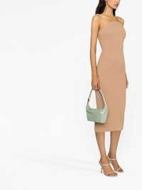 ribbed bodycon midi dress beige fine ribbed square neck strapless stretch-design central rear vent straight hem Made in Italy Composition Viscose 83%, Polyester 17% SIZE & FIT Model measurements Height 5 ft 10 in(1.78 m) Bust/Chest 31.49 in(80 cm) Hips 35.03 in(89 cm) Waist 23.62 in(60 cm) Measurement HIPS 29.13 in(74 cm) LENGTH 42.91 in(109 cm) WAIST 22.04 in(56 cm) FittingInformation This piece fits true to size. We recommend you get your regular size Cut for a slim fit Made with a mid-weight fabric