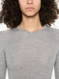 ribbed sweater Highlights - Light grey - V-neck - Long sleeves Made in Italy Composition Wool 96%, Polyamide 3%, Polyurethane 1% SIZE & FIT Model measurements Height 5 ft 10 in(1.79 m) Bust/Chest 31.88 in(81 cm) Hips 35.43 in(90 cm) Waist 23.62 in(60 cm) FittingInformation Designed for a close fit throughout Made with a lightweight knit, this piece offers some stretch