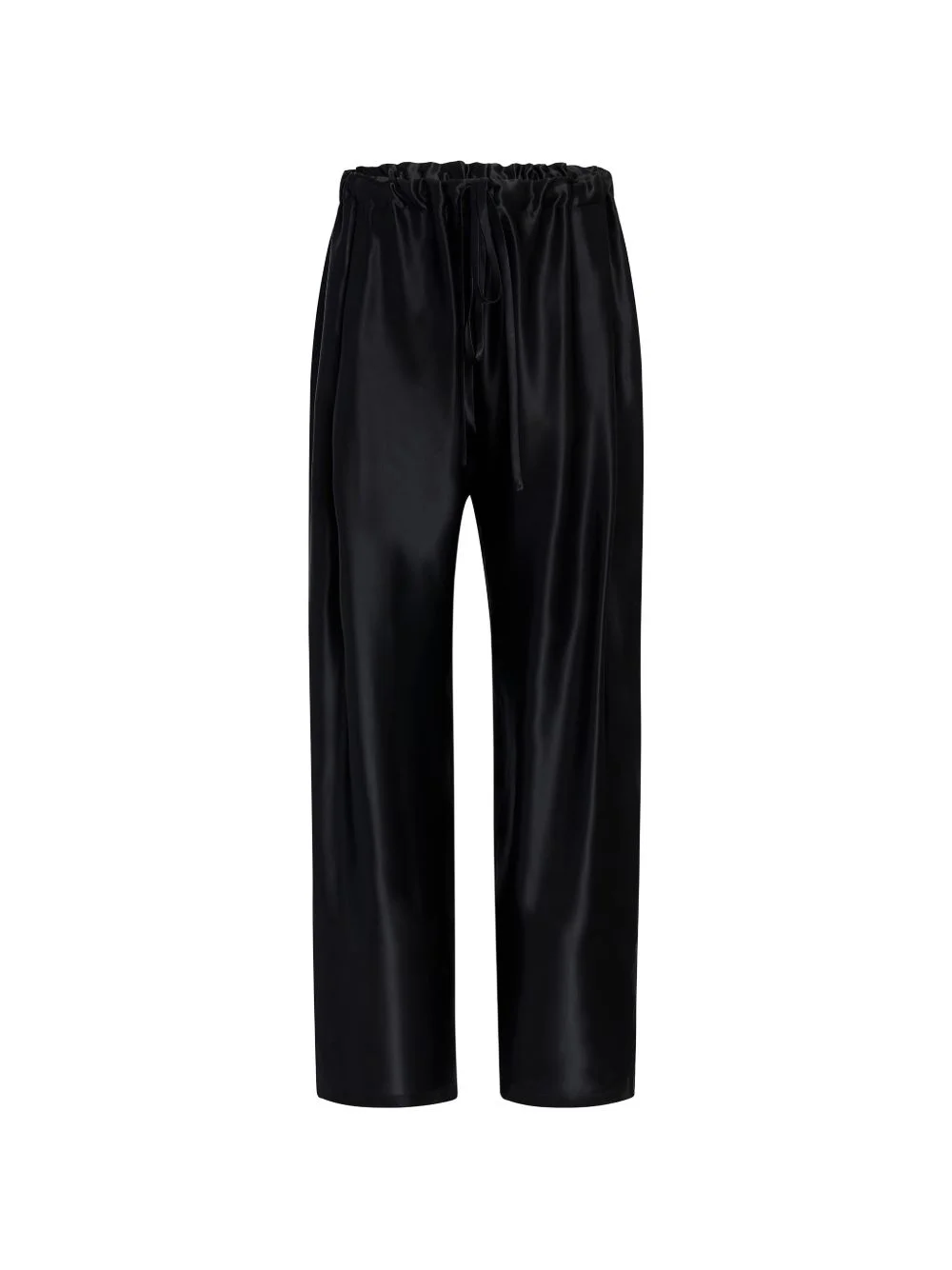Rohen pants Highlights - A pull-on pant that balances softness with sophistication. the relaxed, bow-leg silhouette is tailored in lightweight and luminous satin that gains enduring structure from cupro. finished with a concealed pocket and a herringbone grosgrain tie at the elasticated waist. - Viscose cupro shiny satin (59% viscose, 41% cupro) - Black Made in Italy Composition Viscose 59%, Cupro 41% Washing instructions Read Manufacturer Guidelines