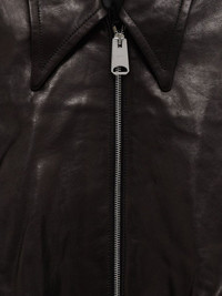 ruched-hem lambskin jacket Highlights - Black - Lambskin leather - Classic collar - Dropped shoulder seams - Two-way zip closure - Elasticated hem - Side pockets Made in United States Composition Lamb Skin 100% Washing instructions Specialist Cleaning