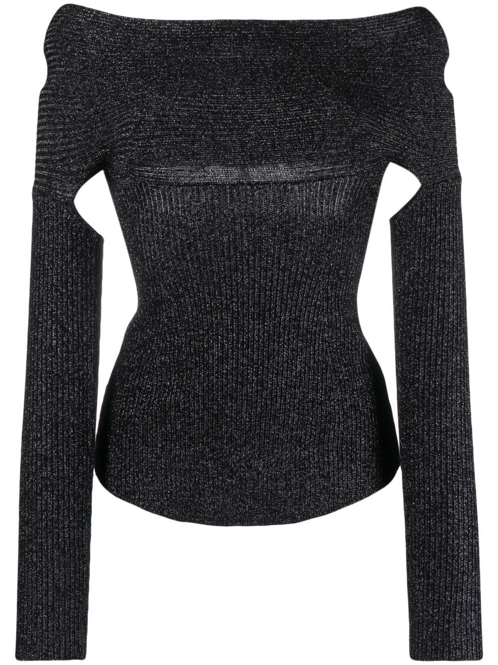 Salma open-back top jet black virgin wool blend open back off-shoulder long sleeves straight hem Made in Italy Composition Virgin Wool 38%, Polyester 36%, Metallic Fibre 17%, Polyamide 8%, Spandex/Elastane 1% SIZE & FIT Model measurements Height 5 ft 10 in(1.78 m) Bust/Chest 29.92 in(76 cm) Hips 34.64 in(88 cm) Waist 23.62 in(60 cm)