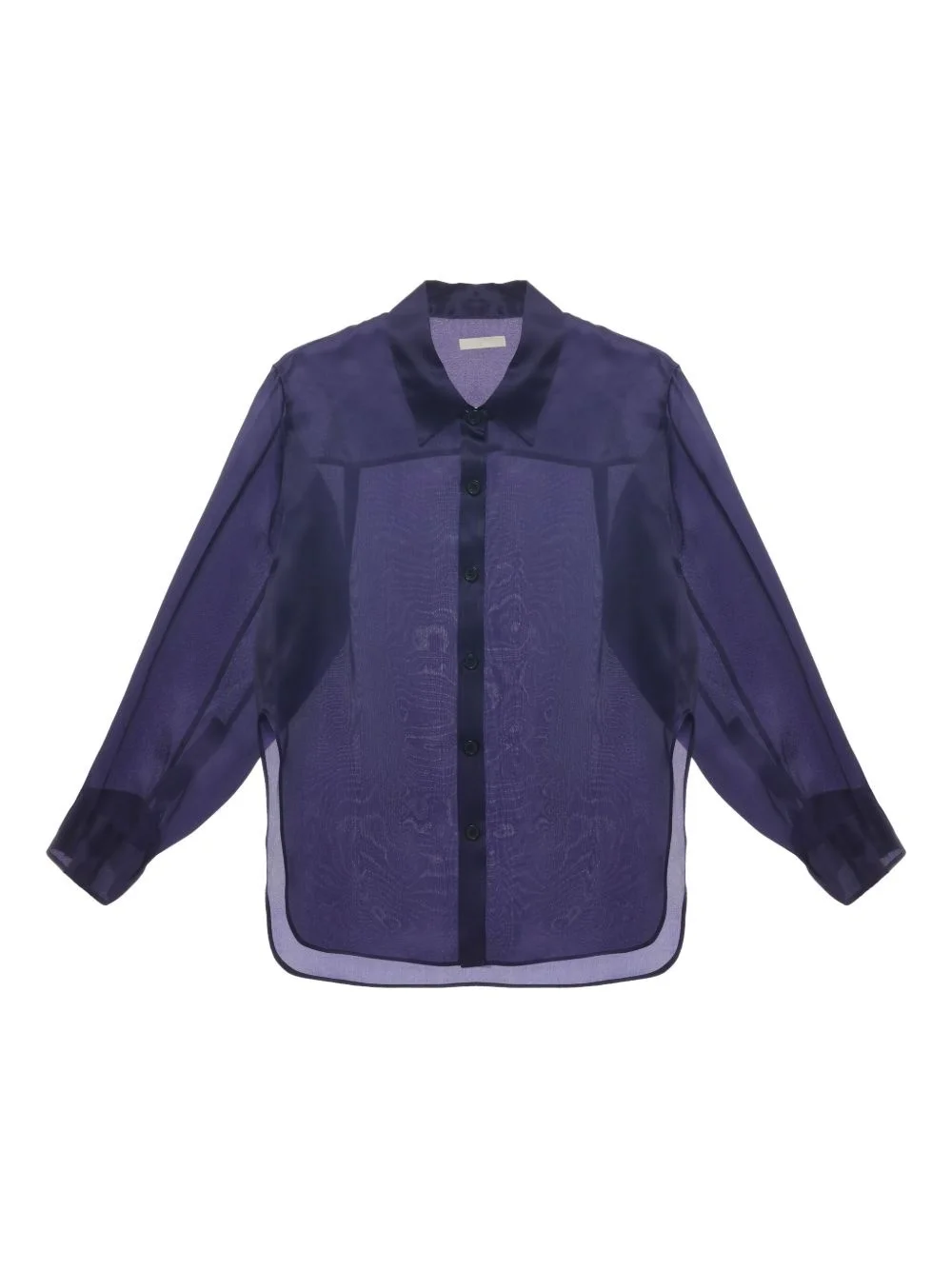 sheer oversized shirt Highlights - Deep purple - Button-down front - Long sleeves - Embroidered detailing - Curved hem - Classic collar Made in Italy Composition Mulberry Silk 100% Washing instructions Read Manufacturer Guidelines