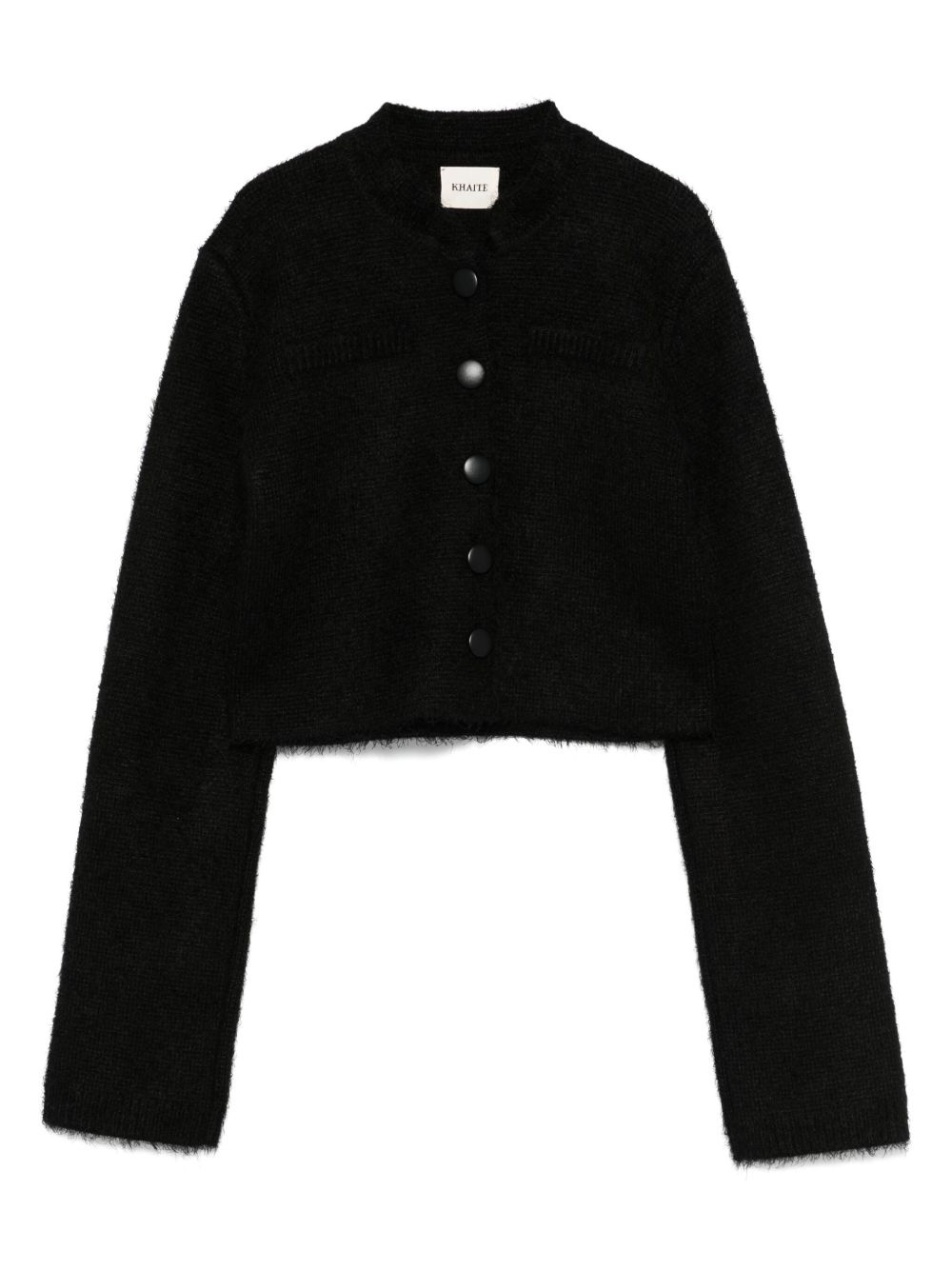 silk-blend cardigan Highlights - Black - Front button fastening - Long sleeves - Cropped - Straight hem Made in Italy Composition Silk 52%, Cashmere 48% SIZE & FIT Model measurements Height 5 ft 10 in(1.78 m) Bust/Chest 31.49 in(80 cm) Hips 37 in(94 cm) Waist 23.62 in(60 cm) FittingInformation Designed for a relaxed fit, this piece allows for comfort and movement when worn Made with a midweight knit, this piece offers some stretch