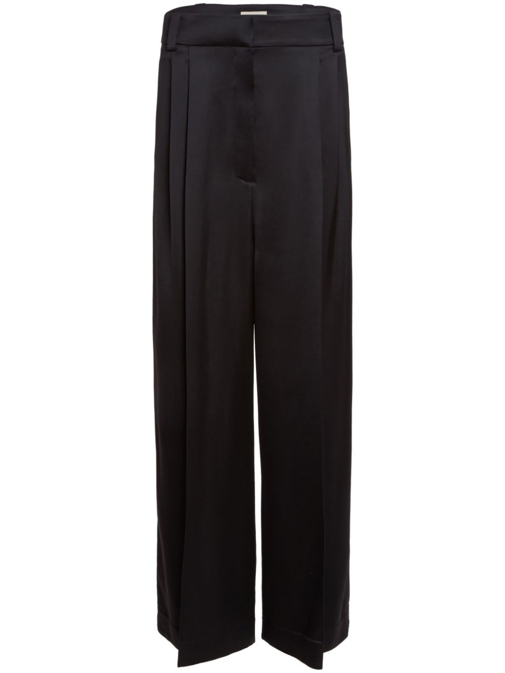 Simone pleated wide-leg trousers Highlights - Black - Virgin wool blend - Satin finish - Pleat detailing - Belt loops - Wide leg - Concealed front fastening - Two side inset pockets - Two rear welt pockets - Straight hem Made in United States Composition Virgin Wool 77%, Viscose 23% Washing instructions Dry Clean Only
