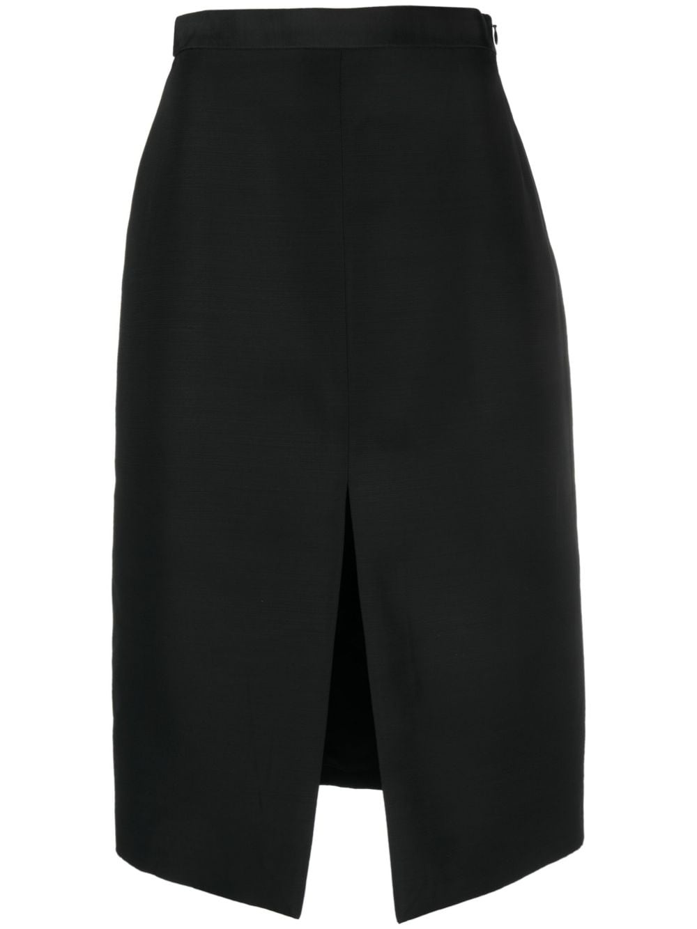 slit-detail straight skirt Highlights - Black - Virgin wool blend/silk - High waist - Front slit - Mid-length Made in Italy Composition Outer: Viscose 59%, Virgin Wool 41% Lining: Silk 100% SIZE & FIT Model measurements Height 5 ft 10 in(1.77 m) Bust/Chest 31.88 in(81 cm) Hips 36.22 in(92 cm) Waist 24.01 in(61 cm) FittingInformation This midi-length skirt is intended to be worn high on the waist Made from a midweight non-stretch fabric This piece fits true to size – take your usual size