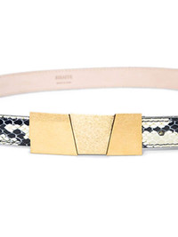 small Axel belt Highlights - White/black/gold - Calf leather - 18k gold-plated brass - Crocodile-effect embossed leather strap - Adjustable fit - Press buckle closure Made in Italy Composition CALFSKIN 100%, 18kt Gold Plated Brass 100%