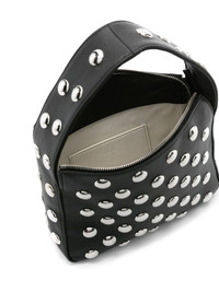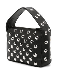 small Elena leather tote bag Highlights - Black - Calf leather - Grained texture - Silver-tone stud detailing - Top zip fastening - Single flat top handle - Main compartment - Internal card slot - Debossed internal logo - Leather lining - This piece comes complete with a protective dust bag. Made in Italy Composition Outer: Calf Leather 100% SIZE & FIT Model measurements Height 5 ft 11 in(1.8 m) Bust/Chest 33.07 in(84 cm) Hips 37 in(94 cm) Waist 25.59 in(65 cm) Measurement DEPTH 2.75 in(6.9 cm) HANDLE 2.36 in(6 cm) HEIGHT 5.9 in(15 cm) WIDTH 7.5 in(19 cm)
