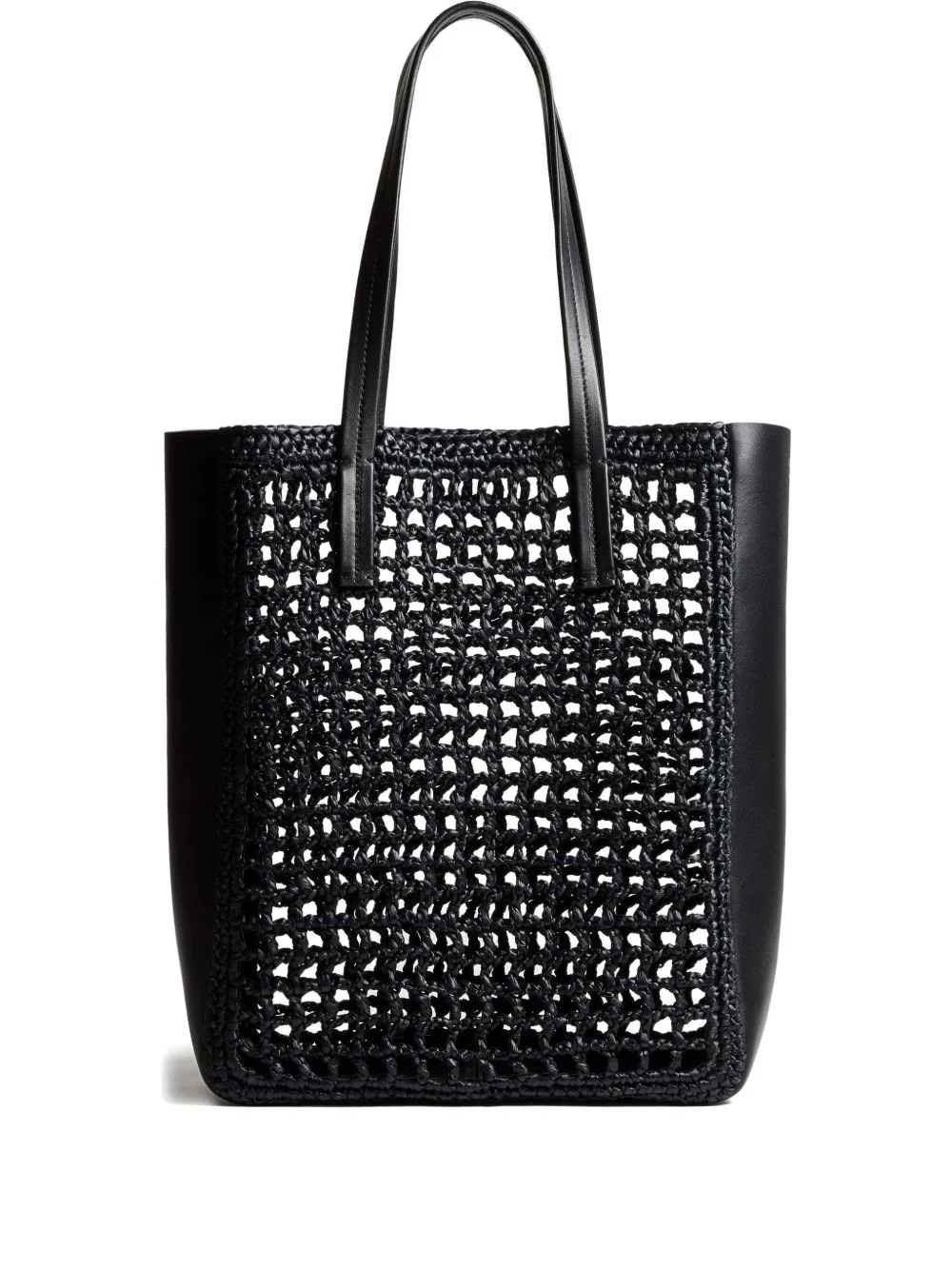small Zoe woven-panel tote bag Highlights - Black - Woven design - Two top handles - Open top - Rectangular shape Made in Italy Composition Viscose 70%, Lambskin 30% SIZE & FIT Measurement HEIGHT 14.01 in(35.6 cm) DEPTH 4.6 in(11.7 cm) WIDTH 12.51 in(31.8 cm) STRAP 7.99 in(20.3 cm)