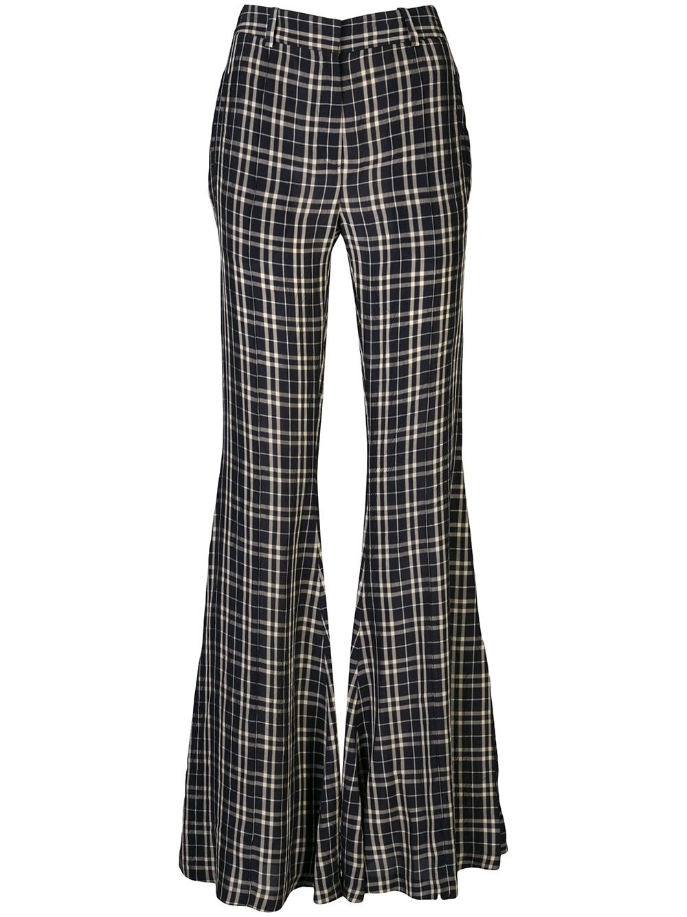 Stockard check flared trousers Navy blue Stockard check flared trousers from KHAITE featuring a check pattern, a concealed fastening, a high rise, a slim fit and a flared style. Imported Composition Viscose 100% SIZE & FIT Model measurements Height 5 ft 10 in(1.77 m) Bust/Chest 31.88 in(81 cm) Hips 33.85 in(86 cm) Waist 24.01 in(61 cm) Measurement FRONT RISE 9.84 in(25 cm) INSIDE LEG 34.64 in(88 cm) Hem Width 18.5 in(47 cm) HIPS 35.82 in(91 cm) WAIST 28.74 in(73 cm) Washing instructions Dry Clean Only