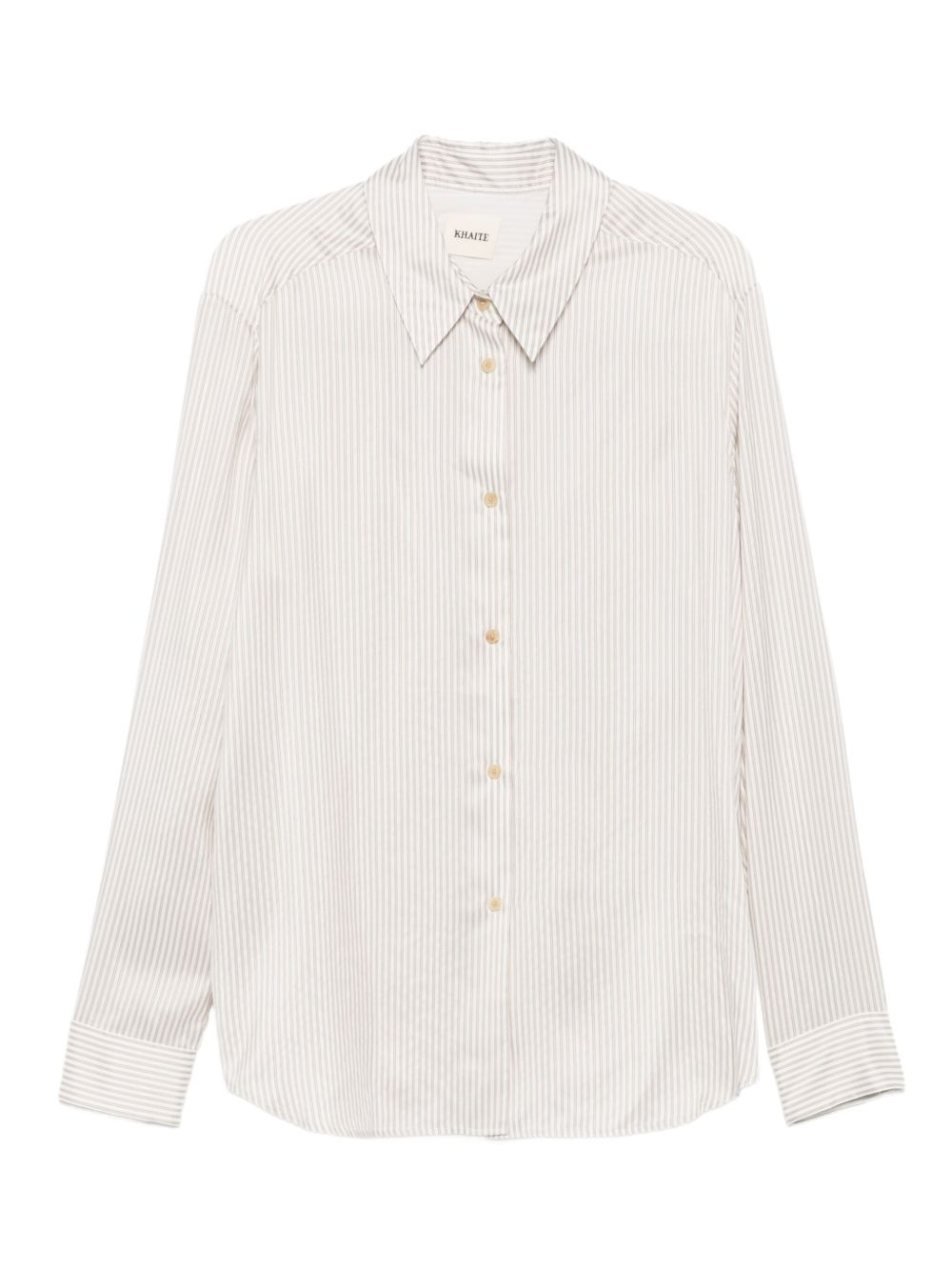 stripe-pattern long-sleeve shirt Highlights - White - Striped pattern - Polo collar - Button fastening - Long sleeves - Buttoned cuffs Made in United States Composition Silk 100% SIZE & FIT Model measurements Height 5 ft 9 in(1.75 m) Bust/Chest 34.64 in(88 cm) Hips 36.61 in(93 cm) Waist 26.37 in(67 cm) Washing instructions Dry Clean Only