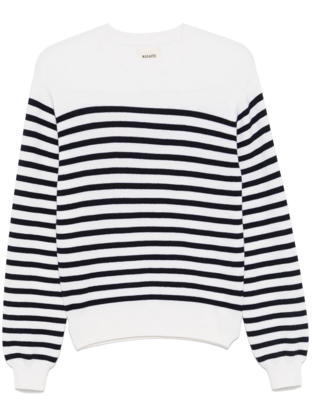 striped sweater Highlights - White - Ribbed cuffs and hem - Crew neck - Long sleeves Imported Composition Cashmere 80%, Elastane 20% SIZE & FIT Model measurements Height 5 ft 10 in(1.78 m) Bust/Chest 33.46 in(85 cm) Hips 36.22 in(92 cm) Waist 23.22 in(59 cm) FittingInformation Designed for a relaxed fit, this piece allows for comfort and movement when worn The ribbed hem offers a close, comfortable fit Made with a midweight knit, this piece offers some stretch