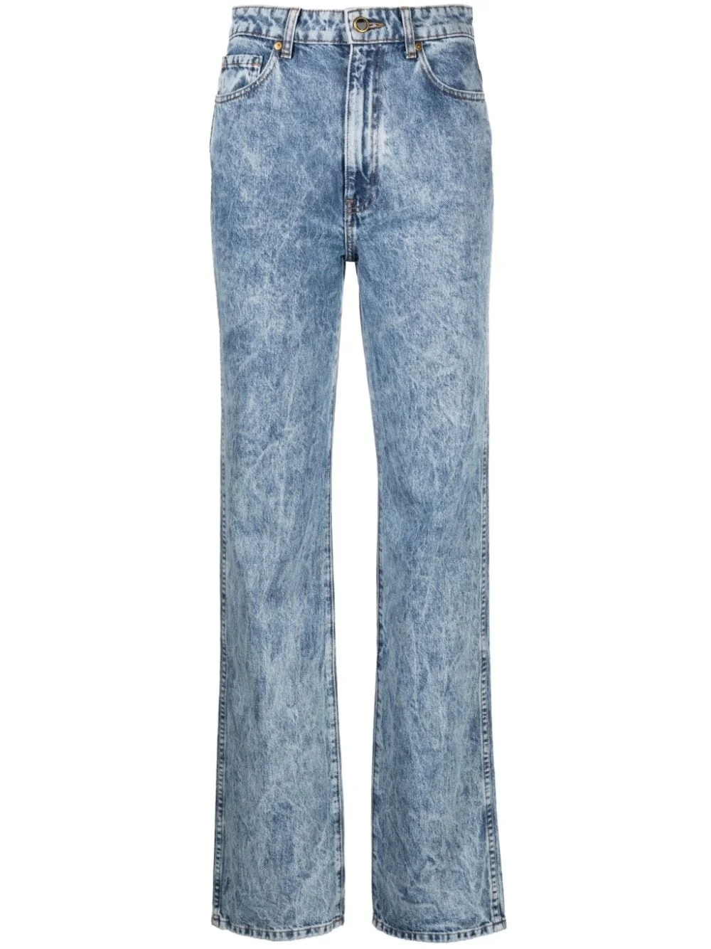 The Danielle acid-wash jeans The Danielle jeans from KHAITE are designed to visually elongate the form with their high rise and straight stovepipe silhouette. They’re blended with recycled cotton with an ‘80s-inspired acid wash and signature enamelled antique brass buttons that act in lieu of a branded back patch. Highlights - Light blue - Cotton - Recycled cotton - Denim - Acid wash - Straight leg - High waist - Belt loops - Front button and zip fastening - Classic five pockets Made in United States Composition Cotton 80%, Recycled Cotton 20% SIZE & FIT Measurement FRONT RISE 12 in(30.5 cm) INSIDE LEG 32.99 in(83.8 cm) BACK RISE 12.99 in(33 cm) HIPS 32 in(81.3 cm) Hem Width 15.98 in(40.6 cm) WAIST 25.98 in(66 cm) Washing instructions Hand Wash