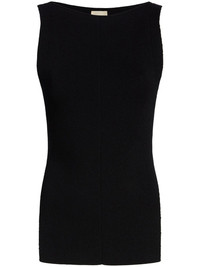The Evelyn ribbed tank top Highlights - Black - Fine ribbed - Slash neck - Sleeveless - Slim cut - Side slit - Straight hem Made in Italy Composition Viscose 75%, Polyester 15%, Polyamide 9%, Elastane 1% SIZE & FIT Measurement LENGTH 24.01 in(61 cm) BUST 29.13 in(74 cm) Washing instructions Dry Clean Only
