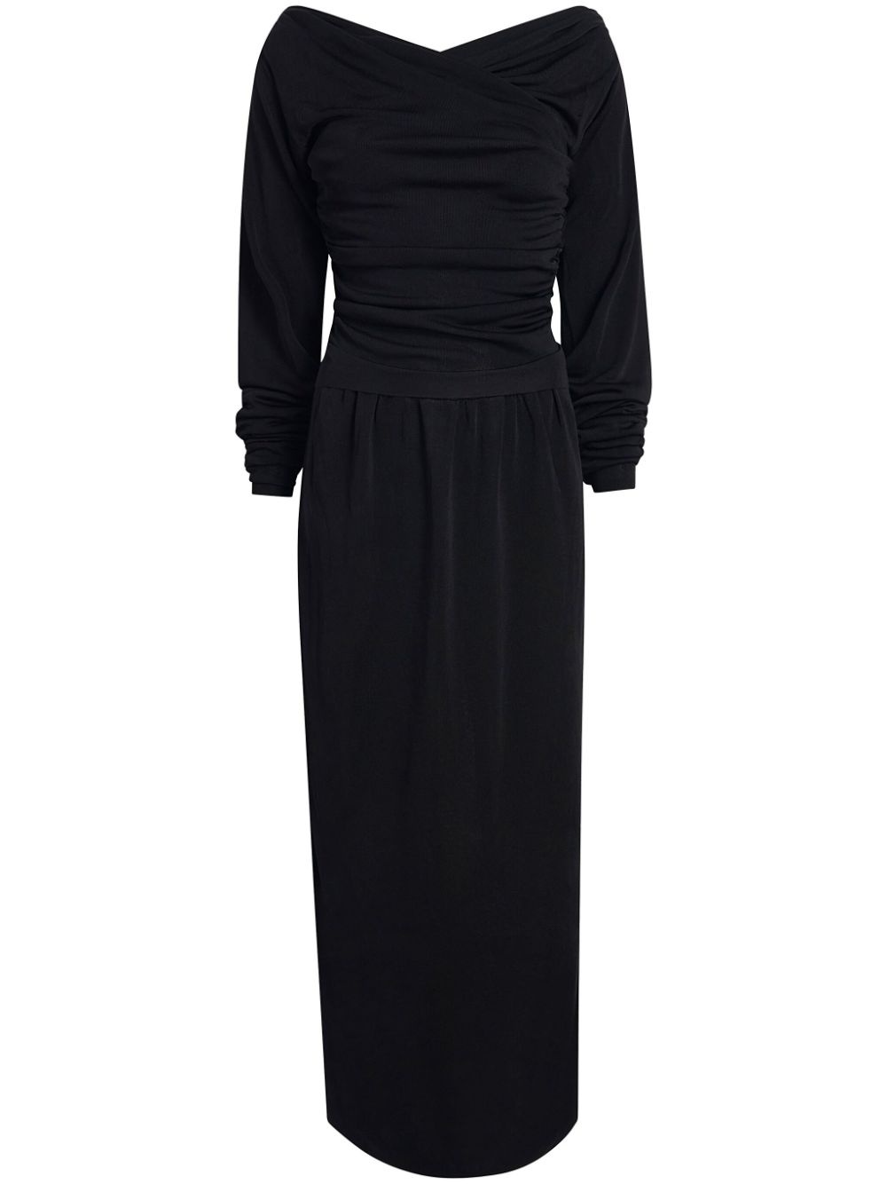 The Fable maxi dress Highlights - Black - Draped design - V-neck - Open back - Long sleeves - Flared hem - Mid-length Made in United Kingdom Composition Viscose 100% Washing instructions Dry Clean Only