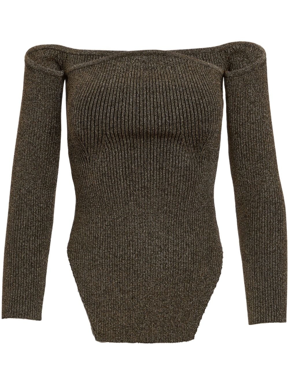 Maria off-the-shoulder metallic ribbed-knit sweater