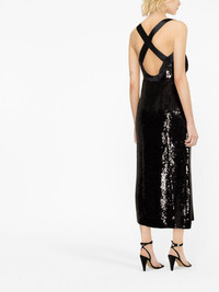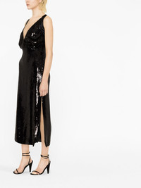 The Milo sequinned midi dress This midi dress by New York label KHAITE is illuminated with scores of shimmering black sequins. The plunging V-neck, deep side slits and open crossover back add to its statement aesthetic. Highlights - Black - Silk - Sequin embellishment - Rear criss-cross straps - V-neck - Fitted waistline - Side slit - Straight hem Made in Italy Composition Outer: Silk 100%, Viscose 100% Lining: Silk 100% SIZE & FIT Model measurements Height 5 ft 10 in(1.79 m) Bust/Chest 31.49 in(80 cm) Hips 35.03 in(89 cm) Waist 23.62 in(60 cm) FittingInformation Designed for a slim fit that sits just away from the body offering a close yet comfortable fit Made from a midweight non-stretch fabric This piece fits true to size – take your usual size Washing instructions Dry Clean Only