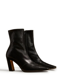 The Nevada leather ankle boots KHAITE's The Dallas ankle boots are an elevated take on classic cowboy styles. They're crafted in smooth black leather and square toes. Curved 85mm heels lend a modern, sculptural bent to their Western inclinations. Highlights - Black - Calf leather - Side zip fastening - Square toe - High sculpted heel Made in Italy Composition Outer: CALFSKIN 100% Lining: CALFSKIN 100% Sole: CALFSKIN 100% SIZE & FIT Measurement HEEL 3.34 in(8.5 cm)
