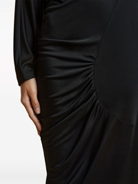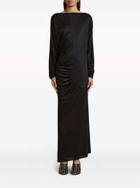 The Oron ruched maxi dress Highlights - Black - Satin finish - Ruched detailing - Asymmetric design - Boat neck - Long sleeves - Fitted waistline - Long length - Straight hem Imported Composition Viscose 100% SIZE & FIT Measurement LENGTH 46.45 in(118 cm)
