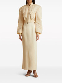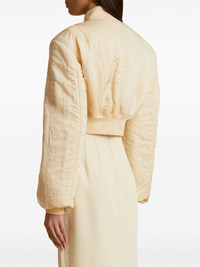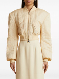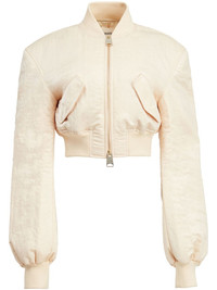 The Reggie cropped bomber jacket Highlights - Bone white - Crepe texture - Baseball collar - Shoulder pads - Two front flap pockets - Front zip fastening - Long sleeves - Ribbed cuffs and hem - Cropped - Straight hem Made in Italy Composition Lining: Cupro 100% Outer: Polyamide 100% SIZE & FIT Measurement SLEEVE LENGTH 24.4 in(62 cm) LENGTH 16.14 in(41 cm) FittingInformation Designed for a slim fit that sits just away from the body offering a close yet comfortable fit Cropped in length Made from a midweight non-stretch fabric This piece fits true to size – take your usual size Washing instructions Dry Clean Only