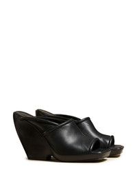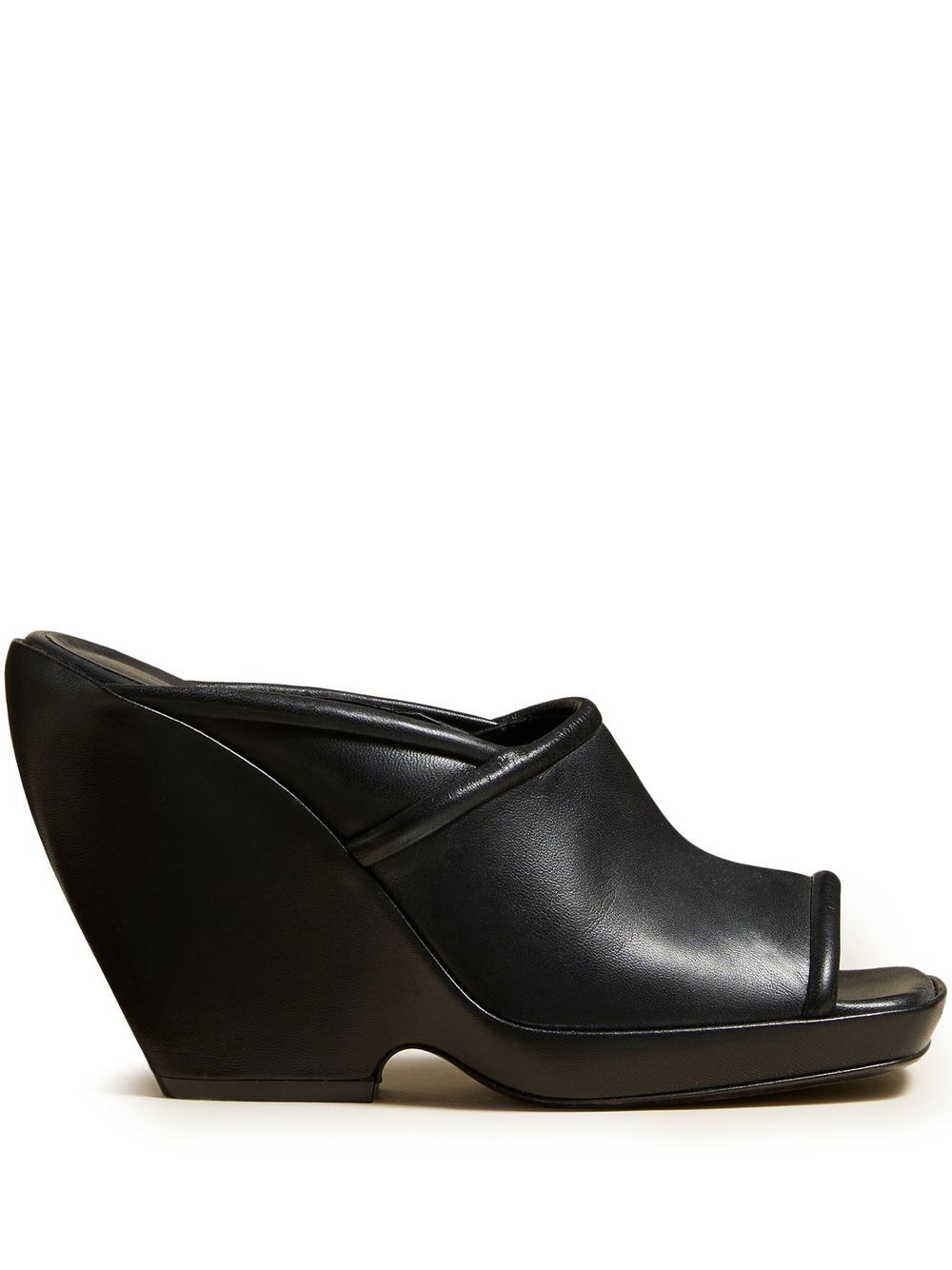 105mm The Stagg sandals Reflecting the brand’s polished approach to design, these The Stagg mules from KHAITE are crafted from smooth leather. Characterised by puffed tonal piping and an open square toe, the wedge heel adds a sculptural finish to this pair. Highlights - Black - Calf leather - Open toe - Slip-on style - High wedge heel Made in Italy Composition Outer: Lambskin 100% Lining: Calf Leather 100% Sole: Calf Leather 100% SIZE & FIT Measurement HEEL 4.13 in(10.5 cm)