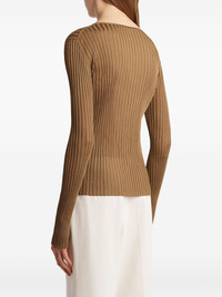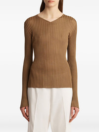 Tia ribbed v-neck top Highlights - Brown - Ribbed knit - V-neck - Long sleeves - Straight hem Made in Italy Composition Viscose 97%, Polyamide 2%, Polyurethane 1% Washing instructions Dry Clean Only