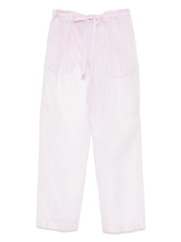 Trenton trousers Highlights - Light purple - Drawstring waist - Two side inset pockets - Rear slit pocket - Transparent design Imported Composition Silk 100% SIZE & FIT Model measurements Height 5 ft 11 in(1.8 m) Bust/Chest 31.49 in(80 cm) Hips 35.82 in(91 cm) Waist 24.8 in(63 cm) FittingInformation Designed for a relaxed tapered cut, these trousers allow for a close fit at the waist and offer a loose fit at the thighs, with a closer fit toward the ankles Adjust this piece’s waistband to your preference using the drawstring Made from a lightweight non-stretch fabric