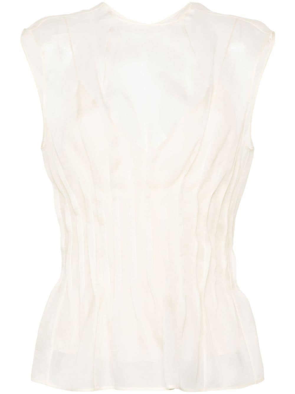 Westin semi-sheer silk blouse Highlights - Beige - Silk - Shantung organza - Semi-sheer construction - Pintuck detailing - Round neck - Single rear button fastening - Sleeveless - Curved hem - Detachable slip top Made in Italy Composition Outer: Silk 100% Lining: Silk 100% SIZE & FIT Model measurements Height 5 ft 10 in(1.78 m) Bust/Chest 33.46 in(85 cm) Hips 36.22 in(92 cm) Waist 23.22 in(59 cm) FittingInformation Designed for a slim fit that sits just away from the body offering a close yet comfortable fit Made from a lightweight non-stretch fabric This piece fits true to size – take your usual size Washing instructions Dry Clean Only