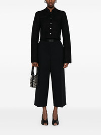 wide-leg cropped trousers Highlights - Black - Front button and zip fastening - Two rear welt pockets - Cropped Made in Italy Composition Outer: Polyester 100%, Cotton 68%, Viscose 32% Lining: Cupro 100% SIZE & FIT Model measurements Height 5 ft 10 in(1.78 m) Bust/Chest 31.49 in(80 cm) Hips 37 in(94 cm) Waist 23.62 in(60 cm) FittingInformation Designed for a straight-leg fit, these trousers allow for a close fit at the waist and an unrestricted, comfortable fit over the leg Cropped in length Made from a midweight non-stretch fabric, this piece offers minimal elasticity when worn Washing instructions Dry Clean Only