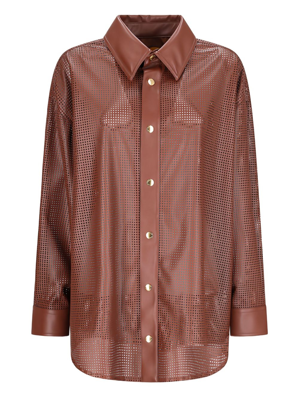 Aura perforated leather shirt Highlights - Brown - Leather - Perforated pattern - Button fastening - Long sleeves Made in Italy Composition Calf Leather 100% Washing instructions Read Manufacturer Guidelines