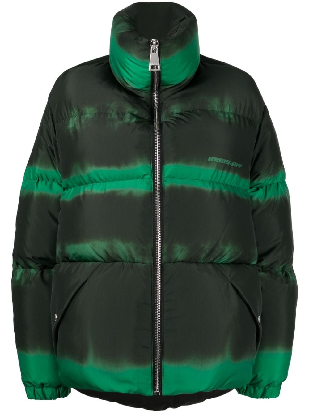 faded-effect puffer jacket Highlights - Grass green - Down-feather filling - Padded design - Faded effect - Logo print at the chest - Funnel neck - Front zip fastening - Two press-stud fastening side pockets - Long sleeves - Elasticated cuffs - Press-stud fastening cuffs - Straight hem Made in Italy Composition Filling: Down 80%, Feather 20% Front: Polyester 100% Lining: Polyester 100% Outer: Polyester 100% SIZE & FIT Model measurements Height 6 ft 2 in(1.87 m) Bust/Chest 33.07 in(84 cm) Hips 35.43 in(90 cm) Waist 26.77 in(68 cm) FittingInformation Designed to be unstructured, offering a loose fit throughout Made from a padded non-stretch fabric, giving it no natural elasticity This piece fits true to size – take your usual size Washing instructions Hand Wash