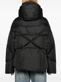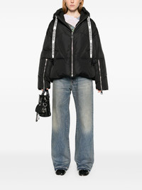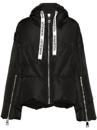 Iconic puffer jacket Highlights - Black - Padded design - Down-feather filling - Logo-embroidered drawstring - Logo-engraved silver-tone hardware - Drawstring hood - Front zip fastening - Drop shoulder - Long sleeves - Cuff zips - Two side slit pockets - Full lining - Drawstring hem Made in Italy Composition Lining: Polyester 100%, Goose Down 90%, Goose Feather 10% Outer: Polyester 100% SIZE & FIT Model measurements Height 5 ft 10 in(1.77 m) Bust/Chest 33.85 in(86 cm) Hips 37 in(94 cm) Waist 26.37 in(67 cm) FittingInformation Designed to be unstructured, offering a loose fit throughout The internal drawstring at the hem allows for fitted preferences Made from a padded non-stretch fabric, giving it no natural elasticity This piece fits true to size – take your usual size