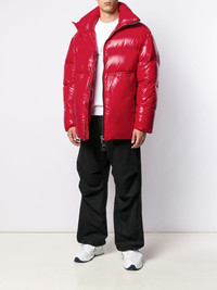 loose-fit padded coat Red loose-fit padded coat from Khrisjoy featuring a high standing collar, a branded rear patch, a front zip fastening, two front pockets and a padded interior. Made in Italy Composition Outer: Polyamide 100% Lining: Polyester 100%, Feather Down 100% SIZE & FIT Model measurements Height 6 ft 1 in(1.86 m) Bust/Chest 37.4 in(95 cm) Hips 37 in(94 cm) Waist 30.7 in(78 cm) FittingInformation This piece fits true to size. We recommend you get your regular size Cut for a loose fit Made with a mid-weight fabric Washing instructions Hand Wash