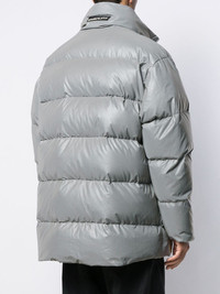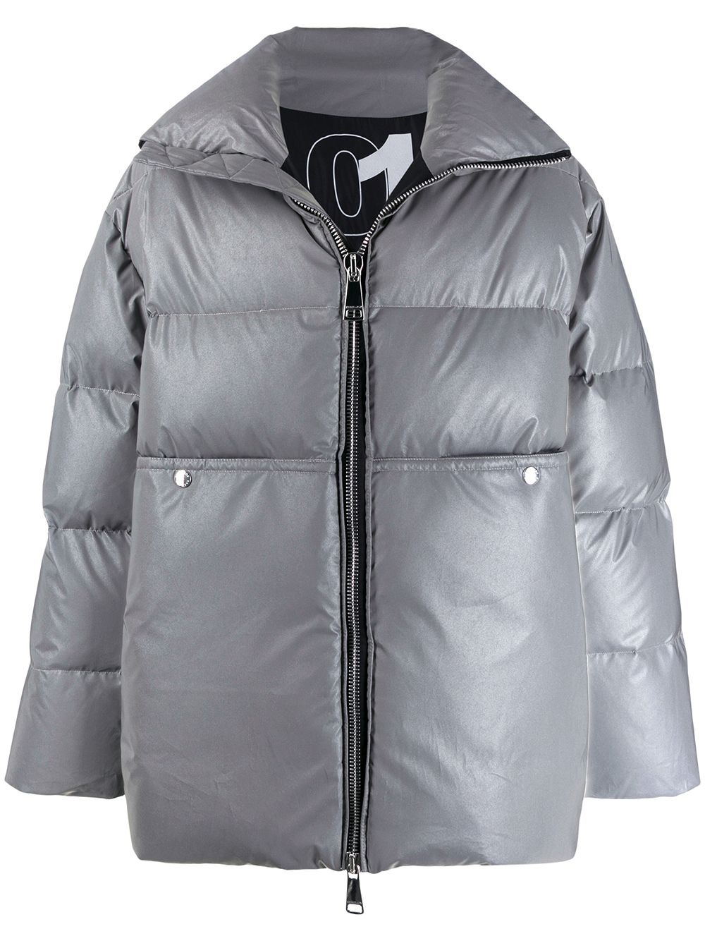 loose-fit padded coat Grey loose-fit padded coat from Khrisjoy featuring a high standing collar, a front zip fastening, a branded rear patch, two front pockets, a padded interior and a loose fit. Made in Italy Composition Lining: Feather Down 100%, Polyester 100% Outer: Polyamide 100% SIZE & FIT Model measurements Height 6 ft 1 in(1.86 m) Bust/Chest 37.4 in(95 cm) Hips 37 in(94 cm) Waist 30.7 in(78 cm) FittingInformation This piece fits true to size. We recommend you get your regular size Cut for a loose fit Made with a mid-weight fabric