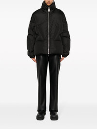 Moon quilted puffer jacket Highlights - Black - Down-feather filling - Padded design - Quilted - Logo patch to the rear - Funnel neck - Front zip fastening - Drop shoulder - Long sleeves - Elasticated cuffs - Two diagonal pockets to the sides - High-low hem Made in Italy Composition Outer: Polyester 100% Lining: Polyester 100%, Feather Down 100%, Polyamide 38%, Wool 29%, Viscose 28%, Cashmere 5% SIZE & FIT Model measurements Height 5 ft 10 in(1.77 m) Bust/Chest 31.88 in(81 cm) Hips 36.22 in(92 cm) Waist 24.01 in(61 cm) FittingInformation Designed to be unstructured, offering a loose fit throughout The internal drawstring at the hem allows for fitted preferences Made from a padded non-stretch fabric, giving it no natural elasticity This piece fits true to size – take your usual size Washing instructions Hand Wash