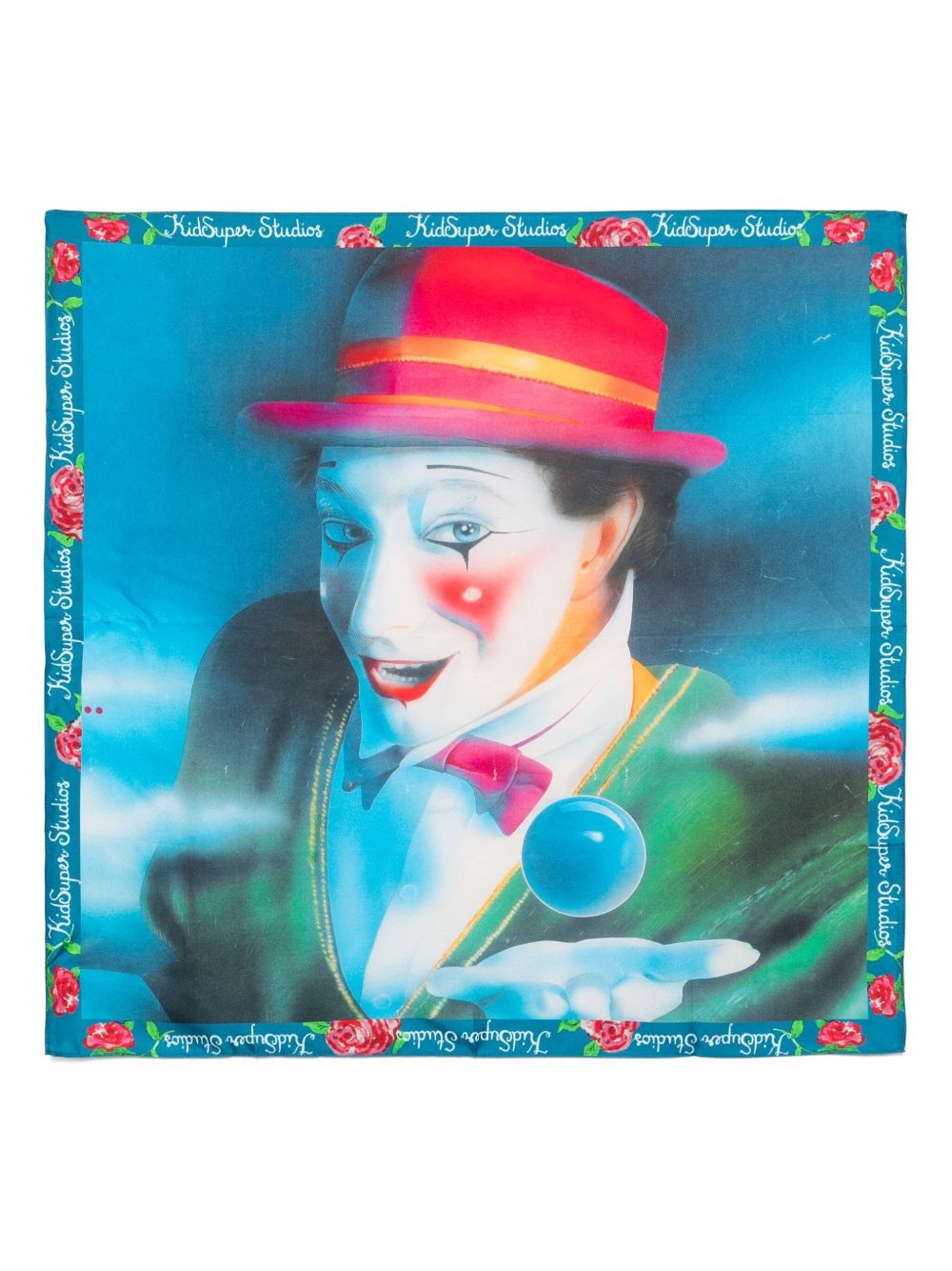 Cirque Clown Cds silk scarf Highlights - Ocean blue - Square shape - Wraparound style - All-over graphic print Imported Composition Silk 100% SIZE & FIT Measurement LENGTH 22.04 in(56 cm) WIDTH 22.04 in(56 cm) Washing instructions Dry Clean Only