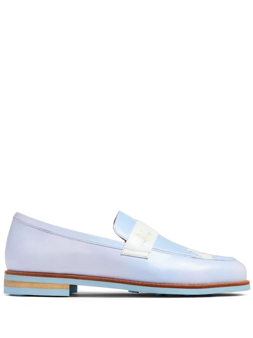 graphic-print leather loafers Highlights - Light blue - Leather - All-over graphic print - Almond toe - Rubber sole - Slip-on style Imported Composition Outer: Leather 100% Lining: Leather 100% Sole: Rubber 100%