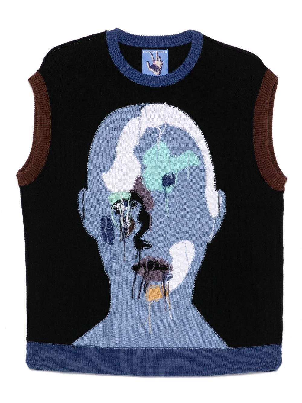 reverse knit patchwork face vest Highlights - Cornflower blue - Ribbed trim - Contrasting trim - Crew neck Imported Composition Cotton 100% Washing instructions Machine Wash