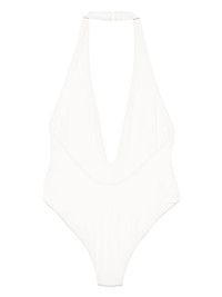 Echauffe swim halter plunge one piece Highlights - Ivory white - Stretch-jersey - Open back - Be mindful to try on swimwear over your own garments. Made in Italy Composition Polyamide 86%, Elastane 14% Washing instructions Machine Wash