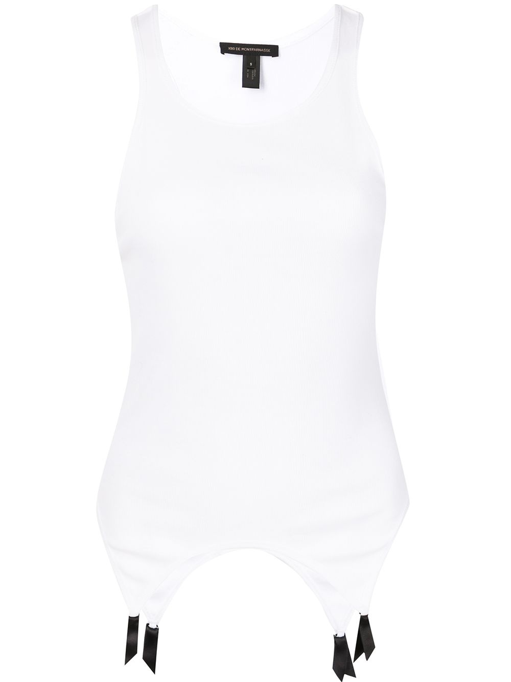 ribbed garter tank top Highlights - White - Silk - Round neck - Wide shoulder straps - Racerback - Sleeveless - Garter strap detailing Made in United States Composition Outer: Modal 100% Silk 100% SIZE & FIT Measurement LENGTH 24.48 in(62.2 cm) WAIST 24.01 in(61 cm) BUST 25 in(63.5 cm) Washing instructions Dry Clean Only