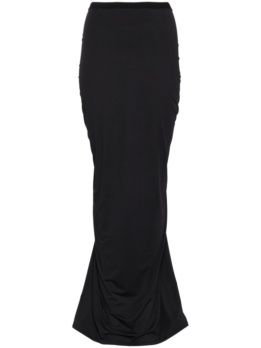 ruched jersey skirt Highlights - Black - Stretch-jersey - Elasticated waistband - Ruched detailing - Full-length - Slim cut - Straight hem Imported Composition Nylon 80%, Lycra 20% SIZE & FIT Model measurements Height 5 ft 10 in(1.77 m) Bust/Chest 27.95 in(71 cm) Hips 34.64 in(88 cm) Waist 22.83 in(58 cm) FittingInformation This midi-length skirt is intended to be worn just below the waist The elasticated waist allows for a comfortable fit Made from a lightweight stretch fabric, this piece offers elasticity and flexibility when worn
