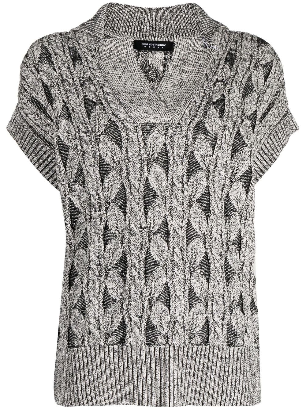 chunky-knit V-neck top Highlights - Grey - Cotton - Chunky knit - V-neck - Short sleeves - Ribbed hem Imported Composition Trims: Viscose 87%, Polyamide 13% Body: Cotton 100% Washing instructions Dry Clean Only
