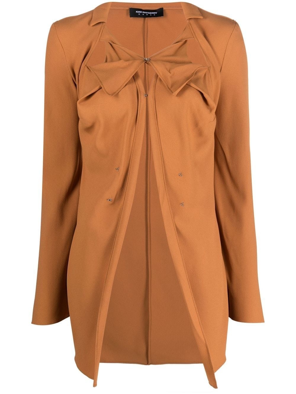 cut-out front-slit blouse peach orange cut-out detailing front slit pleat detailing spread collar long sleeves straight hem Imported Composition Acetate 53%, Viscose 47% Washing instructions Dry Clean Only