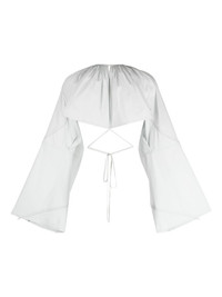 gathered-detail cropped blouse Highlights - Light grey - Cotton blend - Stretch-design - Gathered detailing - Gathered neckline - Round neck - Rear hook and eye fastening - Tie-fastening straps - Long wide sleeves - Cropped - Curved hem Imported Composition Body: Cotton 72%, Polyamide 25%, Elastane 3% Washing instructions Dry Clean Only