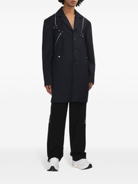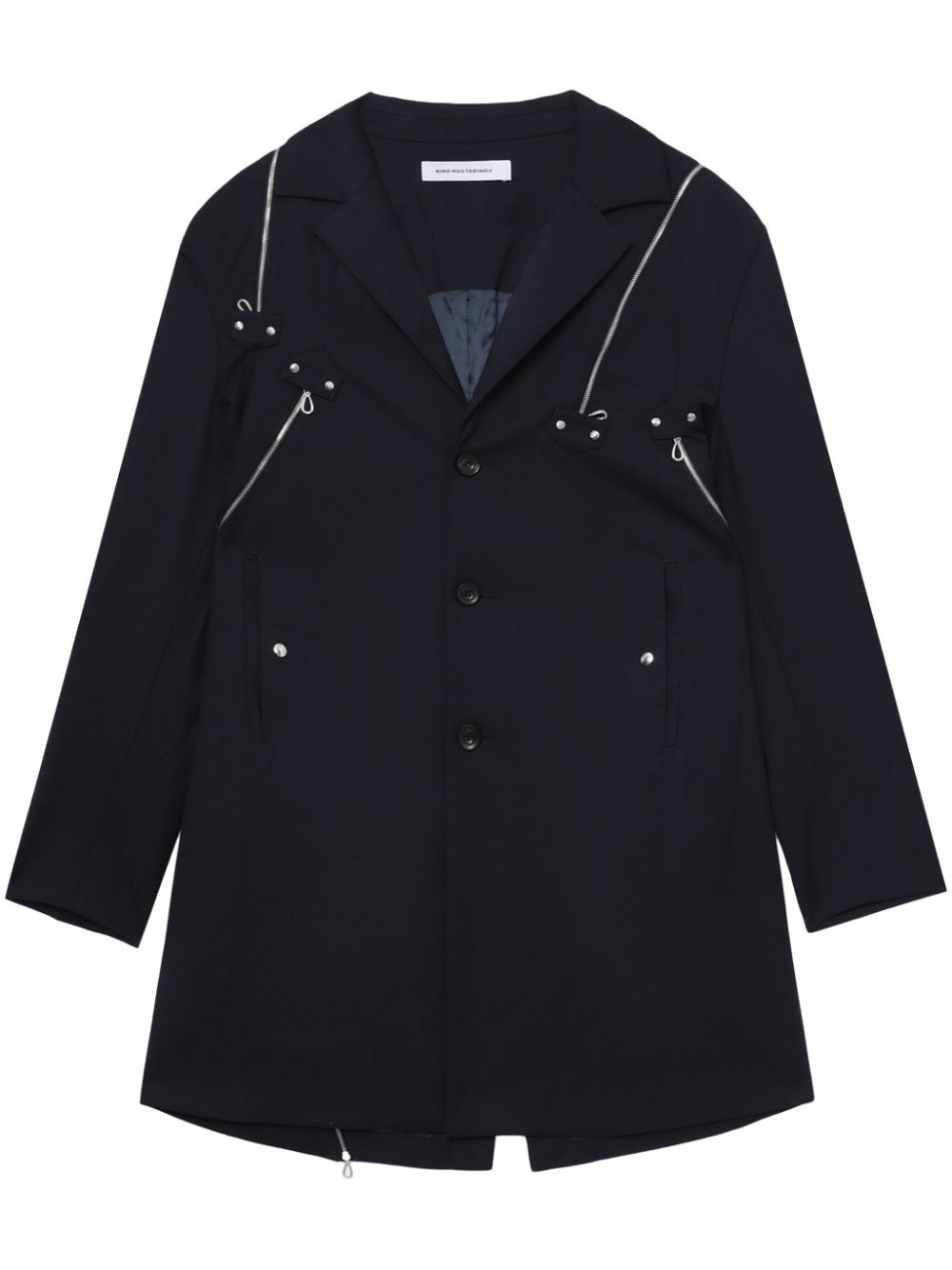 Knox coat Highlights - Navy blue - Front button fastening - Notched collar - Decorative zip detailing - Stud detail - Long sleeves - Two press-stud fastening side pockets - Mid-length - Straight hem Imported Composition Polyester 64%, Rayon 36%