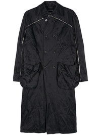 Mallarme coat Highlights - Black - Satin finish - Spread collar - Hook-fastening collar - Long sleeves - Zip-opening at the sleeve - Storm flap - Two front cargo pockets - Below-knee length - Rear inverted pleat - Central rear vent - Two internal slip pockets - Full lining - Straight hem - Double-breasted button fastening Imported Composition Outer: Polyamide 47%, Cotton 46%, Metal 7% Lining: Viscose 100%, Cotton 100%