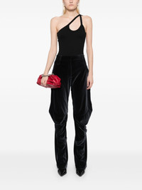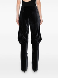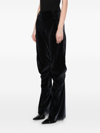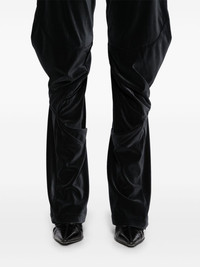 Shikari Trousers Highlights - Dark green - Crushed velvet - Hook and zip fly fastening - Belt loops - Two side slash pockets - Rear welt pocket - Twist detailing - Flared hem Imported Composition Polyester 97%, Elastane 3% SIZE & FIT Model measurements Height 5 ft 9 in(1.76 m) Bust/Chest 31.1 in(79 cm) Hips 35.03 in(89 cm) Waist 24.4 in(62 cm) FittingInformation Designed for a straight-leg fit, these trousers allow for a close fit at the waist and an unrestricted, comfortable fit over the leg Made from a midweight stretch fabric, this piece offers elasticity and flexibility when worn