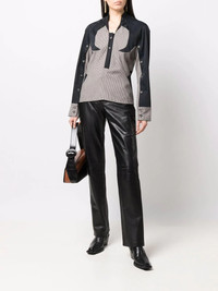 two-tone houndstooth-pattern blouse jet-black/pale-grey wool-blend houndstooth pattern two-tone design V-neck front button fastening long sleeves side button fastening buttoned cuffs Imported Composition Polyester 70%, Wool 30% SIZE & FIT Model measurements Height 5 ft 10 in(1.78 m) Bust/Chest 31.49 in(80 cm) Hips 36.22 in(92 cm) Waist 25.59 in(65 cm) FittingInformation This piece fits true to size. We recommend you get your regular size Cut for a loose fit Made with a mid-weight non-stretch fabric Washing instructions Dry Clean Only